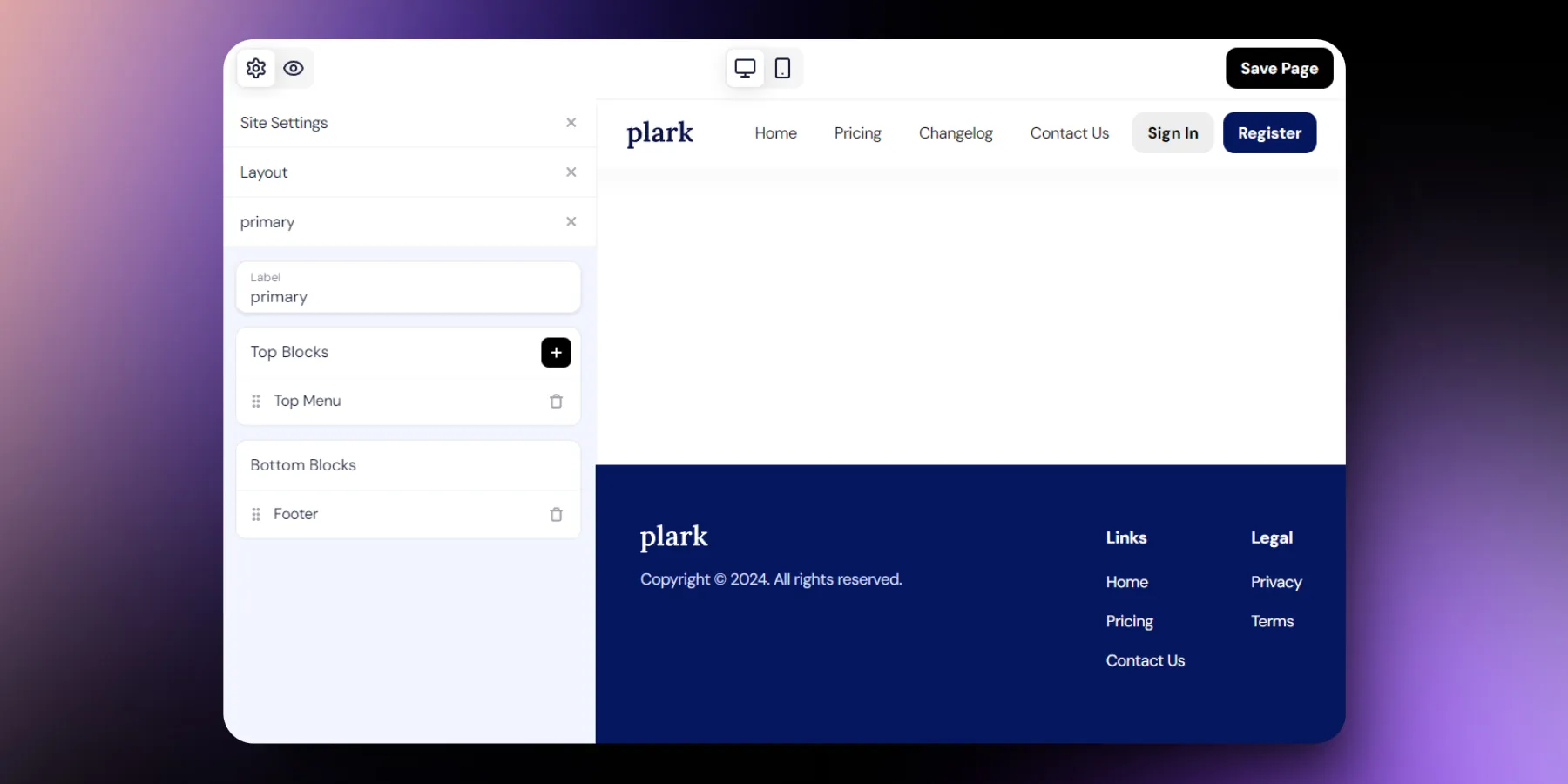 Create layouts to easily have consistent top and bottom sections for all pages in your website.